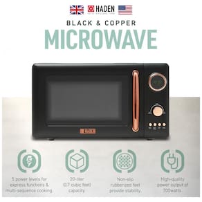 Micro-ondas HADEN 700W, 20L, Controle Digital, Descongelamento Automático e Prato Giratório, Preto Cobre - 110V