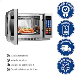 - Com estrutura em aço inox, capacidade para bandejas de até 35cm e 1000W de potência, o micro-ondas Saro é ideal para o preparo rápido de pratos semiprontos, como massas, salgados e escondidinhos.