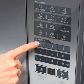 Função Tira Odor, Minuto Fácil, Função Eco, Receitas Pré-Programadas, Menu Descongelar, Menu Preferido, Display digital, 10 Níveis de Potência, Função Limpa Fácil.Função Grill