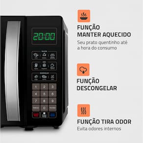 FUNÇÃO TIRA ODOR Elimina odores internos deixados pelas refeições. Mantenha o ambiente agradável e cheiroso e seu forno micro-ondas limpo por mais tempo.