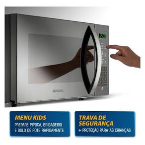 Micro-ondas Mondial: o MO-02-34-E 34 litros 220v é espelhado, tem 10 NIVEIS DE POTENCIA e espaço suficiente para preparar todas as refeições com diversas FUNÇÕES: TIRA ODOR, DESCONGELAR, MANTER AQUECIDO, MENU KIDS e DIA A DIA. Moderno, com PRATO GIRATÓRIO e tecla INICIAR FÁCIL de 30 segundos, este forno micro-ondas de 34L e é ótimo para preparar alimentos em pratos, recipientes e refratários.