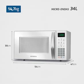 TimerA Linha Micro-ondas MO-02-34-W é um lançamento Mondial e vai trazer mais inovação e beleza para a sua cozinha. Este modelo tem capacidade de 34 Litros, um espaço interno grande o suficiente para atender toda a família. É ótimo para preparar alimentos em pratos, recipientes e refratários. Tem funções de uso frequente, como Menu Dia a Dia e Menu Kids, além de funções que deixam a vida mais prática, como o botão +30 Segundos, Manter Aquecido, Descongelar e Tira Odor. Com uma potência de 1400w e 10 ajustes, o Micro-ondas da Mondial é versátil e prático, perfeito para a sua rotina. Aproveite a qualidade que só a Mondial oferece!