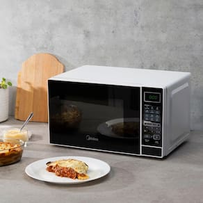 Painel com Minuto Fácil, Receitas Pré-programadas, Menu Descongelar, Menu Preferido, Função Eco, Função Tira Odor, Função Aquecer, Tecla Ligar/+30 segundos.Função Grill