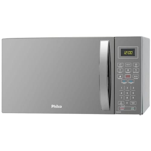 Micro-ondas Philco 26L PMO26ES com 1400W de potência. Possui menu fit, teclas fáceis (Lasanha, pizza, pipoca, brigadeiro, manter aquecido, +30S), descongelamento rápido ou por peso, função potência, função relógio, função display/sound, função tira odor, classe A em eficiência energética, trava de segurança e desligamento do display/som.Função Grill