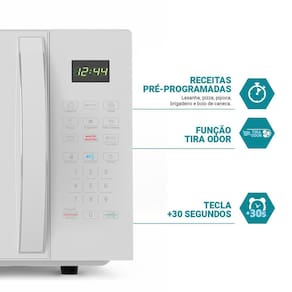 Pintura Limpa Fácil, Display digital, Função +30 segundos, Função Tira Odor, Trava de segurança, Função RelógioFunção Grill