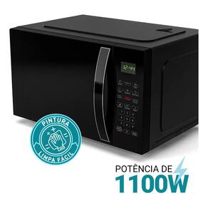 Micro-ondas de bancada com 28 litros de capacidade. Possui Pintura Limpa Fácil interna, função Manter Aquecido, Tira Odor, função travar e Desligamento Automático. Potência de 1100W. Voltagem 127V. Acabamento interno em Pintura Limpa Fácil. Material de construção: Metal, Plástico e Vidro. Cordão elétrico de 1 metro.Função Grill