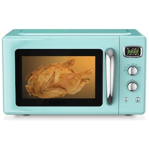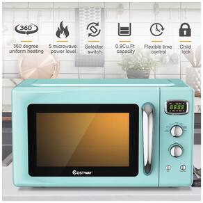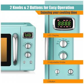 Potência de saída de 900 W para aquecimento uniforme Equipado com motor de potência de 900 W, este micro ondas retro compacto oferece alta eficiência para aquecer alimentos ou bebidas. Com tecnologia inteligente, este pequeno forno de micro ondas pode aquecer alimentos ou bebidas uniformemente em 360 graus. 5 Micro Power Glass Turntable O forno de micro ondas retrô foi projetado com 5 micro de potência para alimentos populares, como pipoca, pizza, batatas e muito mais. Além disso, com o prato giratório de vidro e a janela de visualização, você pode monitorar quando os alimentos ou bebidas estão sendo aquecidos. Temporização de LED e 6 botões convenientes O display LED claro mostra o tempo restante de cozimento para que você saiba quanto tempo deve processar os alimentos. Três bipes após a conclusão do aquecimento. É fácil de operar com descrições de função abaixo dos 6 botões mecânicos retro