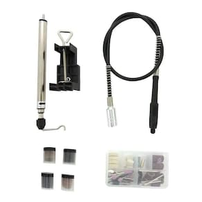 Itens inclusos: - 1 Micro retífica 130W - 1 Eixo flexível 118cm - 1 Suporte de bancada - 80 Discos de corte 21x21mm - 80 Discos de corte 19x19mm - 4 Feltros 12x6mm - 4 Feltros de lã 22x5mm - 1 Bastão abrasivo - 1 Pinça - 10 Pedras de desbaste com haste (pontas montadas) - 1 Suporte para Lixa cilíndrica - 8 Lixas cilíndricas 15x13,5mm - 2 Escovas de Aço - 1 Chave em L - 1 Chave Fixa - 1 Caixa dos acessórios - 1 Maleta
