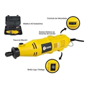 Micro retífica com 40 acessórios e maleta ch2904 charbs Voltagem: 220v Micro retífica com 40 acessórios e maleta ch2904 charbs - 110v e 220v A nova micro retifica charbs chega ao brasil com um super kit de acessórios. É a sua chance de ter uma micro retífica e ter tudo o que precisa para realizar os projetos que você sempre quis. Ideal em diferentes tipos de materiais e superfícies para trabalhos de desbaste, remoção, limpeza, polimento, gravação, lixamento e furação de diferentes tipos de materiais e superfícies. - marca: charbs - modelo: ch2904 - potência: 135w - voltagem: 127v - frequência: 60 hz - 6 velocidades - velocidade variável entre 8.000 e 30.000 rpm - acompanha maleta e 40 acessórios - isolação dupla - peso: 1,15kg - : 90 dias Com a mini retífica, você recebe uma prática maleta contendo com um kit de 40 acessórios para micro retífica contendo 40 peças, para lixar, gravar, polir, desbastar, cotar, furar, e muito mais: - acessórios para furar: : broca - acessórios para lixar: :: discos de lixa :: tubos de lixa :: adaptador para tubo de lixa - acessórios para gravar: :: pontas diamantadas - acessórios para cortar: :: discos de corte :: adaptador para disco - acessórios para desbastar: :: pontas montadas :: disco de desbaste - acessórios para polir: :: feltros de polir :: adaptador para feltro de polir - outros acessórios: :: chave de boca :: pedra para afiar :: pinça 3mm