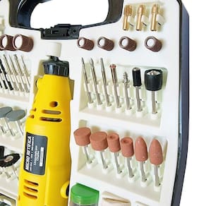 Itens inclusos: - 1 Micro Retífica Charbs - 1 Eixo Flexível - 6 Pinças - 8 Tubos de Lixa - 3 Brocas - 9 Pontas diamantadas - 2 Suporte para discos de corte - 1 Suporte para disco de polimento - 2 Suportes para tubos de lixa - 3 Escovas de nylon - 3 Escovas de metal - 10 Pontas montadas - 1 Frasco com paste de polimento - 7 Discos de polir - 14 Discos de desbastar - 90 Discos de lixa - 65 Discos de corte - 5 Discos de corte reforçados - 1 Pedra de amolar - 1 Chave de troca - 1 Ponta para polir