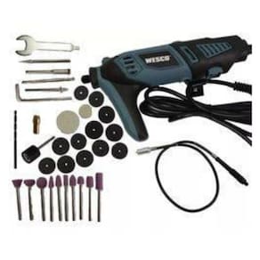 Micro Retifica Elétrica 127v 160W WS3113KU Wesco Especificações Técnicas do Martelete Sds Plus a Bateria 18v WS2940k2 Wesco: Tensão: 127V Potencia: 160 W Número de rotações nominal: 800035000/mim Tamanho do suporte: 2,3mm/3,2mm Duplo isolamento Cor: preto e azul Peso :0,65kg Dimensões da Caixa: 24 x 9 x 30 cm Itens Inclusos: 1 Empunhadura auxiliar 1 Limitador de profundidade 1 Reservatório plástico para graxa 40 acessórios