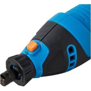 Ela também apresenta uma fácil troca das escovas de carvão que simplifica a manutenção da ferramenta e um botão de bloqueio de eixo para facilitar a troca de acessórios sem rotacionar o motor da micro retífica.