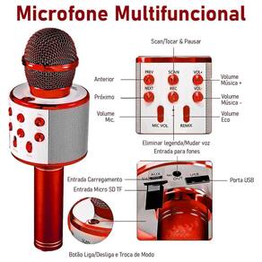 Microfone Bluetooth Infantil - Star Voice Karaokê - Rose - Zoop Toys: as crianças podem cantar e reproduzir suas músicas favoritas com o Microfone Star Voice Karaokê! Basta conectar o bluetooth do celular ou tablet no microfone. Este microfone sem fio para crianças tem diversas funções e conta com 8 botões para configurar o volume, pular faixas, modificar a voz e muito mais. Tem um design lindo para que os melhores shows. Detalhes: • Microfone sem fio • Com caixa de som embutida: amplifica o som. • Conecta com celular ou tablet via bluetooth • Controle de mixer: ajuste de volume e eco. • Efeitos de eco, agudos e graves • Bateria recarregável via cabo USB • Entrada micro USB • Entrada cartão micro SD ou TF • Bateria e cabo USB inclusos • Idioma: Português-BR Informações: • Produto: Microfone Sem Fio Bluetooth • Marca: Zoop Toys • Coleção: Star Voice Karaokê • Cor: Rose • Tipo: Microfone Infantil com Bluetooth • Categoria: Instrumentos Musicais de Brinquedo • Subcategoria: Microfones e Karaokês • Tamanho: 22 cm aprox. • Conteúdo: - 01 Microfone Karaokê Bluetooth - 01 Cabo USB para carregar - 01 Manual de instruções • Recomendação: para crianças a partir de 03 anos de idade Especificações: • Referência: ZP00996 • Código de Barras: 7899788406196 • Embalagem (C x A x L): ?7.5 x 22 x 7.5 cm • Embalagem (Peso): 0.250 kg • Material / Composição: Poliestireno e Metal • Funcionamento: a bateria 186.50 LI 1800 mAH recarregável via cabo USB • Anatel: WS-858-1658-21-14479 • Registro: 000225/2022 • Certificado: Órgãos Autorizados - OCP´S (Organismos de Certificação de Produtos) Aviso: • As imagens são meramente ilustrativas • Os pesos, tamanhos e medidas são aproximados • As cores e estampas dos produtos podem ter variações • As informações são de responsabilidade do fabricante ou fornecedor
