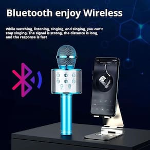 Microfone bluetooth de alta sensibilidade que vai transformar suas brincadeiras entre amigos mais divertidas. Construído em dois alto-falantes, você pode ouvir e cantar a qualquer hora e em qualquer lugar. Usando o Bluetooth do telefone móvel, para sincronizar com suas música prediletas. Função de cancelamento de ruído microfone capacitivo sem fio, você pode desfrutar e cantar suas músicas com praticidade pelo próprio microfone. Microfone Bluetooth Karaoke Youtuber Gravador Com Som Ws-858