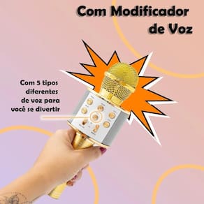 Microfone bluetooth karaokê . Ws-858 A última foto do anúncio visto apenas pelo computador , é um vídeo explicando todas as funções dos botões para você aproveitar ao máximo e se divertir com o microfone e todas sua família Diversão para crianças e adultos. Lembrando, é um microfone de brinquedo e não um microfone profissional Orientação complementar O microfone depois de ligado tem duração de uso entre 5 a 8 minutos, sendo desligado automaticamente após esse período para preservação da bateria, haja vista ser utilizado por crianças que poderiam deixa-lo ligado. Caso deseje que fique ligado de forma ininterrupta, orientamos ligar o microfone no bluetooth. O aparelho é a bateria e o produto só é carregado para teste. Quando ele chegar até você, o carregue por aproximadamente 4h para o total aproveitamento do seu produto. A duração da bateria é por volta de 3h de uso. Nós agradecemos a preferência e ficamos à disposição. Funções: Microfone; Possui 5 opções de voz através do botão rec ; Karaokê conectando com o bluetooth no spotify, youtube, etc ; Caixa de som; Gravador conectando um pen drive, ele grava o que você fala ; Rádio. Especificações: Modelo: ws -858 Material: abs shell Tamanho do item: aprox. 23cm x 7cm x 7cm Potência de saída: 5w Tensão de carregamento: dc 5v = 1a Faixa de frequência: 100hz-10khz Capacidade da bateria: 1800mah Nível máximo sonora: 115db 1khz thd1% Modo de reverberação: reverberação de som de eco Fonte de alimentação: bateria de íons de lítio embutida Tempo de carregamento: cerca de 4 horas Tempo de trabalho: cerca de 4 horas Conteúdo da embalagem: 1 microfone na cor escolhida; 1 cabo de carregamento usb. obs: não acompanha a fonte de carregamento, somente o cabo . do vendedor: 30 dias Homologação Inmetro: IP-BRI-0169/2022-01