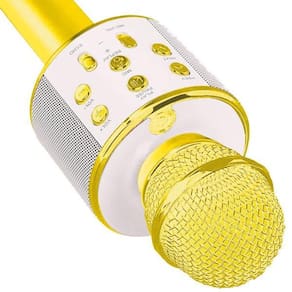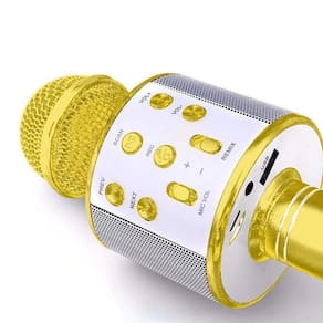 Microfone bluetooth wster ws-858 sem fio karaokê - dourado Este microfone portátil conta com uma caixa de som embutida nele, com ele você pode simplesmente cantar e ter sua voz amplificada nos alto-falantes assim além de poder sincronizar seu celular ou notebook via bluetooth e reproduzir um playback e cantar junto, ou simplesmente deixar ele tocar como uma caixa de som portátil. Existe ainda a opção de conectar este microfone em uma caixinha de som ou caixa amplificada através do cabo auxiliar p2 e cantar alto pra valer com o som saindo em alto-falantes externos potentes. Características: - potência de saída: 5w; - faixa de frequência: 100hz-10khs; - nível máximo sonora: 115db 1khz tdh1%; - modo de reverberação: reverberação de efeito sonoro; - fonte de alimentação: bateria de lítio 18650 embutida; - capacidade da bateria: 1800mah; - potência de carregamento: dc5v. Tamanho e peso aproximadamente : - tamanho do produto: 8 x 23 x 8; - tamanho da embalagem: 10 x 23 x 5.5; - peso da embalgem: 241g; - peso do produto: 190g. Itens inclusos na embalagem: - 1 x microfone - 1 x cabo usb - 1 x manual Codígo da anatel: 01826-22-14479 Homologação Anatel: 080281811799 Marca: Não Informado