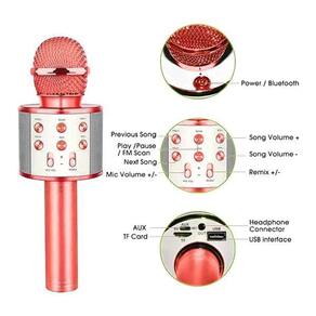 Microfone bluetooth wster ws-858 sem fio karaokê - rose gold Este microfone portátil conta com uma caixa de som embutida nele, com ele você pode simplesmente cantar e ter sua voz amplificada nos alto-falantes assim além de poder sincronizar seu celular ou notebook via bluetooth e reproduzir um playback e cantar junto, ou simplesmente deixar ele tocar como uma caixa de som portátil. Existe ainda a opção de conectar este microfone em uma caixinha de som ou caixa amplificada através do cabo auxiliar p2 e cantar alto pra valer com o som saindo em alto-falantes externos potentes. Operação dos botões segure on/off pressione: troca de modo pressione: o botão de música anterior no modo mp3. no modo selfie, pressione o mesmo botão para ativar a função selfie somente para celulares com sistema android e ios pressione: botão reproduzir /pausar pressione: o botão on/off do microfone para desligar segure: para função de repetição no cartão tf + aumentar o volume - diminuir o volume - gravação com o celular: conecte o fio de gravação: insira o plugue micro do fio de gravação no microfone abra o app karaokê no celular, para usar o app música kugou ou outros aplicativos de gravação, selecione sua música que deseja, grave a música de acordo com o método de canto teste e salve a música: opere de acordo com as instruções do app karaokê. - karaokê sem fio: fornecimento de energia: segure o botão power para ligar o microfone ative a conexão sem fio do celular, clique para conectar, conexão bem-sucedida se o tom de alerta for produzido ajuste o volume do som do microfone e a reverberação para o nível adequado. inicie o modo karaokê Características: - potência de saída: 5w; - faixa de frequência: 100hz-10khs; - nível máximo sonora: 115db 1khz tdh1%; - modo de reverberação: reverberação de efeito sonoro; - fonte de alimentação: bateria de lítio 18650 embutida; - capacidade da bateria: 1800mah; - potência de carregamento: dc5v; - cartão sd; - p2; - usb; - micro usb; - recarregável; - tecnologia bluetooth; - modificação de voz divertido; - controle de mixer. Tamanho e peso aproximadamente : - tamanho do produto: 8 x 23 x 8; - tamanho da embalagem: 10 x 23 x 5.5; - peso da embalgem: 241 g. Itens inclusos na embalagem: - 1 x microfone - 1 x cabo usb - 1 x manual Codígo da anatel: 01826-22-14479 Homologação Anatel: 025911203111 Marca: Não Informado