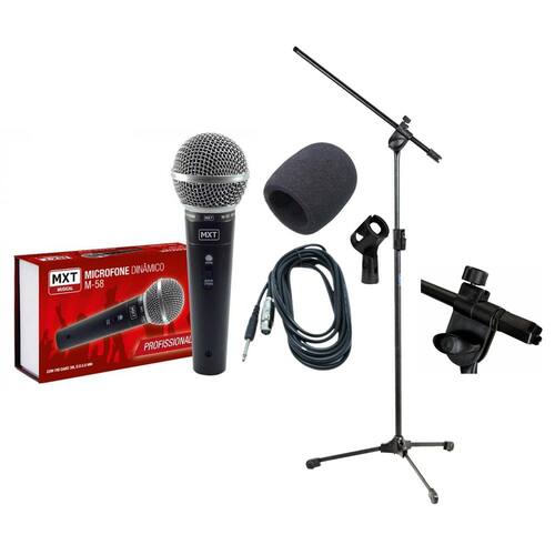 Microfone Dinâmico Profissional MXT M-58 + Cabo 3 Metros Descrição do produto: Solte a voz com o microfone profissional Dinâmico M-58 da MXT, surpreenda-se com a qualidade e o incrível custo beneficio, que este microfone pode lhe proporcionar Não perca essa oportunidade e adquira já Alta sensibilidade Reprodução vocal com clareza Chave liga/desliga com indicador O ímã de neodímio é feito de modo que o alto nível e alta qualidade de som são produzidos Microfones dinâmicos com excelente projeção vocal; Configuração cardióide para minimização de microfonias; Aplicação versátil e construção robusta a níveis profissionais; Baixíssima distorção com sinal Super limpo. Microfone dinâmico Unidirecional Impedância Nominal: 600ohms Resposta de frequência: 80Hz a 15KHz Sensibilidade campo livre, sem carga : 1KHz Mínima terminação de impedância: 1K Sensibilidade do campo magnético: 50Hz Peso: 280g Itens incluso: 1x Microfones MXT M-58 1x Cabos 3 Metros 1x Espuma de microfone 1x pedestal para microfone ASK 1x Ean: 9000007934323