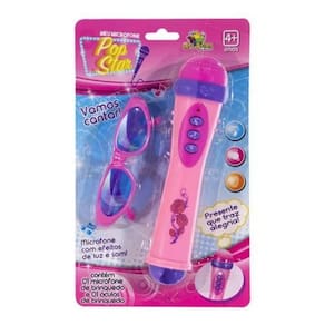 Este brinquedo é alimentado por 2 pilhas AA e é fácil de usar, tornando-o o presente perfeito para qualquer ocasião. Com o Microfone + Óculos Infantil Com Luz E Som Menina Pop Star, a sua filha pode brincar e se divertir enquanto desenvolve a sua confiança e habilidades de performance.