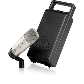 O microfone C-1 Condensador Cardióide da Behringer possui cápsula de 16mm, resposta em frequência de 40Hz - 20 kHz, MAX SPL 136DP e acompanha adaptador de suporte e case.