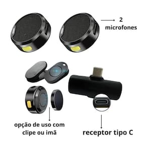 Microfone duplo de Lapela sem fio É um acessório de alta qualidade projetado para oferecer excelente desempenho de áudio em dispositivos IOS, Android, possui Entrada Tipo C e Lightning no mesmo adaptador/. Compatível com uma variedade de smartphones, tablets e Outros dispositivos móveis, este microfone lapela é perfeito para vlogs, entrevistas, gravações de áudio profissional e muito mais. Sua conexão universal permite uma fácil instalação e uso, garantindo uma gravação de áudio nítida e clara em qualquer situação. Características: Nova tecnologia sem fio 2.4G Plug and play, transmissão de qualidade sonora sem perdas, disponível em IOS e Android. Interface tipo C / IOS O transceptor é carregado inteiramente aproximadamente 2 horas Uma redução do ruído do clique e som agradável Equipado com a função de redução do ruído da abertura/fechamento do auto, pode eficazmente remover o Ruído branco ruidoso ao redor e restaurar a qualidade sadia limpa e pura para você Clique para ativar a redução de ruído Clique na redução do ruído para fechar Frequência: 50HZ-20KH Transdutor: Microfone condensador Comunicação: Sem fio Estilo: Microfone de lapela Capacidade da bateria: Até 500mah Alcance: 20m Duração 48hs de uso contínuo Carregamento total em 2hs Cor: Preto REDUÇÃO DE RUÍDO: 1. Uma redução do ruído do clique e som agradável 2. Equipado com a função de redução do ruído da abertura/fechamento do auto, pode Eficazmente remover o ruído branco ruidoso ao redor e restaurar a qualidade sadia limpa e pura para você 3. Clique para ativar a redução de ruído Clique na redução do ruído para fechar Lista do pacote: 1x Caixa recarregável V7 2x Microfones Homologação Anatel: 109062214103 Marca: Não Informado