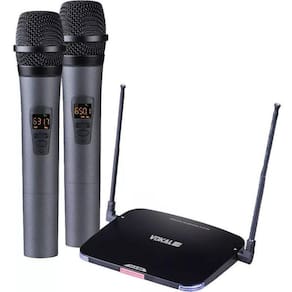 Método de programação: DQPSK; Estabilidade de frequência: 3bpm; Resposta de frequência: 40-20khz; Distância de transmissão: 40-80 mts (sem obstáculos); Tensão de trabalho: 100-240 VAC 50-60Hz (fonte de alimentação); Faixa de frequência de sinal: 500-980mHz; 2 canais com 16 frequências (total de 32 frequências diferentes); Display com indicador de frequência; Largura de banda: 2.5 mHz; 2 Saídas P2 (1/8); 2 Cabos P2 + P10 ;