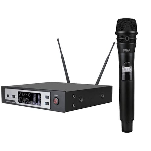 Microfone Dylan Qs-10 Sem Fio MICROFONE DYLAN QS-10 SEM FIO O sistema sem fio QS-10 e? indicado para quem procura qualidade de a?udio e estabilidade de transmissa?o, pois possui o sistema True Diversity. Sua ca?psula dina?mica super cardio?ide tem maior rejeic?a?o a rui?dos laterais, melhorando a performance em palcos com alto volume. Indicado para captac?a?o de voz falada ou cantada, ideal para eventos de pequeno e me?dio porte.