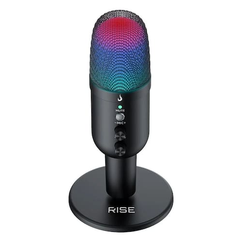O Microfone Gamer de Mesa Rise Mode Elite 04 RGB é uma excelente escolha para quem busca qualidade de áudio profissional aliada a um design moderno e estiloso. Com iluminação RGB vibrante e estrutura resistente em ABS e metal, ele se destaca no setup de qualquer gamer ou criador de conteúdo.