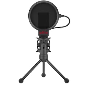comece a gravar com o microfone e tripé omnidirecional AUX Condensador Redragon SEYFERT de 3,5 mm. Este microfone condensador omnidirecional capta o som de todas as direções e garante uma gravação nítida. Este microfone é fornecido com um suporte de tripé dobrável e giratório, portátil, com suporte de choque para maior estabilidade e um filtro pop de pescoço de ganso de metal para amortecer qualquer ruído alto em sua voz. O SEYFERT se conecta ao seu computador com um conector padrão de 3,5 mm.