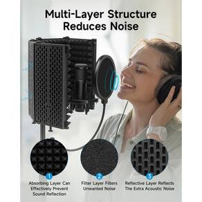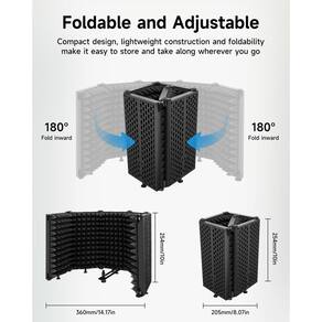Moukey Escudo de isolamento de microfone com filtro pop e suporte de tripé, escudo de microfone dobrável com isolamento acústico triplo, escudo de som de microfone de alta densidade para estúdio de gravação, podcasts, canto, transmissão - ?Isolamento de som triplo?Isolamento de microfone dobrável Moukey com camada reflexiva + camada de filtro + camada absorvente, a espuma acústica de alta densidade que elimina as ondas de áudio e interferências de forma eficaz. A área de reflexão e a área de absorção reduzem o ruído de ambientes externos, funciona bem para reduzir o som ambiente, mantém a clareza da voz humana e do instrumento durante a gravação. - ?Dobrável e ajustável?Leva apenas alguns minutos para desdobrar este equipamento de estúdio de gravação. Os 5 painéis de proteção de microfone dobráveis são ajustáveis em 180° e o adaptador de parafuso incluído facilita o ajuste do aperto. O suporte de microfone de estúdio pode ser fixado em uma mesa ou mesa, e também pode ser montado em um suporte de microfone. - ?Durável e resistente?O painel frontal da placa de isolamento acústico é feito de espuma acústica de alta densidade e o painel traseiro é um design de plástico ABS leve, que combina excelente isolamento acústico com uma estrutura resistente e durável. A capa de isolamento do microfone de estúdio pode ser colocada sobre a mesa para uso ou pode ser instalada diretamente no suporte do microfone. É muito adequado para apresentações em pé e gravações sentadas. Existem duas opções para você usar. - ?Fácil de instalar?O escudo de isolamento de microfone tem clipes de aço na parte traseira. Insira o clipe de aço no suporte e aperte os parafusos. A altura do suporte é de 185 cm / 72,8 polegadas, e você pode facilmente ajustar o escudo de isolamento do microfone para a posição que você precisa, que é ajustável em altura de 42 a 72 polegadas. - ?Segurança e versatilidade?O escudo de isolamento de microfone está equipado com um tripé resistente, então não há necessidade de se preocupar com o risco de centro de gravidade instável e tombar com um leve toque. O suporte pode usá-lo em uma mesa ou montá-lo em uma barra através do ajustador em qualquer altura para acomodar posições sentadas ou em pé, pode ser ajustado de forma rápida, conveniente e segura. Adequado para trabalho diário, criação pessoal, estúdio de gravação, estação de rádio.