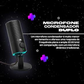 O Microfone JBL Quantum Stream com fio foi desenvolvido para usuários que buscam captação de áudio clara, estável e consistente em transmissões ao vivo, gravações, chamadas online e comunicação em jogos. Integrante da linha JBL Quantum, o modelo segue um padrão técnico focado em qualidade sonora, praticidade de uso e design funcional, atendendo tanto criadores de conteúdo quanto usuários que necessitam de um microfone confiável no dia a dia.