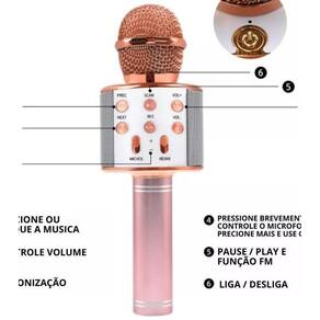 Microfone karaoke bluetooth: liberdade para cantar e se expressar Esse microfone é realmente incrível Ele tem caixa de som embutido, não precisa estar conectado a nenhum outro aparelho para funcionar. Possui controle de volume e controle de eco. Tem também a função de alteração de voz, com apenas um click, sua voz pode ficar bem fininha ou bem grossa. É muito divertido Funciona também como uma mini caixa de som. Você pode conectar por bluetooth o seu celular ou qualquer outro aparelho compatível e reproduzir o som. Imagine só, você coloca a sua música preferida para tocar e pode cantar ao mesmo tempo seja um astro cante e brinque a qualquer hora e em qualquer lugar