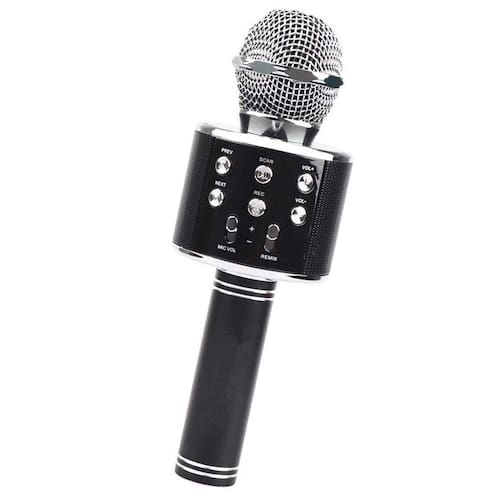 Microfone profissional bluetooth sem fio handheld karaoke ktv usb jogador alto-falante Microfone bluetooth karaokê show sem fio android e ios recarregável este é um produto 2 em 1:Você pode utilizar ao mesmo tempo a caixa de som embutida e o microfone e fazer um divertido karaokeEste microfone portátil conta com uma caixa de som embutida nele, com ele você pode simplesmente cantar e ter sua voz amplificada nos alto-falantes assim além de poder sincronizar seu celular ou notebook via bluetooth e reproduzir um playback e cantar junto, ou simplesmente deixar ele tocar como uma caixa de som portátil.Existe ainda a opção de conectar este microfone em uma caixinha de som ou caixa amplificada através do cabo auxiliar (p2) e cantar alto pra valer com o som saindo em alto-falantes externos potentes.Por ser um produto que possui uma saída auxiliar ( aux), permite a conexão em uma caixa de som externa para reprodução da voz via cabo, este produto pode ser utilizado para pequenas apresentações.Recursos:- microfone karaokê, canta e o som sai no próprio microfone.- botão karaokê, reduz o som da música e dá destaque na voz.- controle de volume e som e do microfone, pause play, liga e desliga, botão eco, passar e voltar faixas.- caixa de som, sincronize por bluetooth, conecte cartão ou pen drive e deixe tocar.- interfaces de entrada: conexão bluetooth, cartão de memória e pen drive (para tocar música).- conexão de saída: p2 femea, pode ser utilizada para gravação ou para reproduzir em uma caixa amplificada.- não reproduz em caixas amplificas por bluetooth, apenas via cabo p2 (não incluso).- carregamento: qualquer portas usb ou carregador de celular 5v. (cabo de carreamento incluído).Especificação do produto:Compatibilidade: compatível com android e iosPotência de saída: 3 w rms x 2Faixa de frequência: 100hz a 10 khzBateria de lítio embutida de 1200mahTensão de carregamento: 5 v dc (usb ou carregador de celular)Versão do bluetooth: 3.0Peso do produto: 208gConteúdo da embalagem:1 x microfone karaokê bluetooth1 x cabo micro usb de carregamento1 x manual