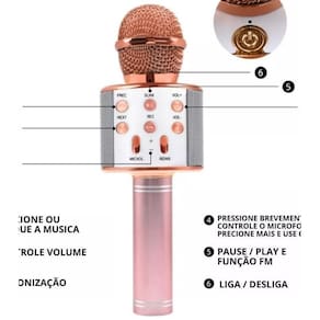 Microfone karaoke bluetooth: transforme suas noites em shows privados Esse microfone é realmente incrível Ele tem caixa de som embutido, não precisa estar conectado a nenhum outro aparelho para funcionar. Possui controle de volume e controle de eco. Tem também a função de alteração de voz, com apenas um click, sua voz pode ficar bem fininha ou bem grossa. É muito divertido Funciona também como uma mini caixa de som. Você pode conectar por bluetooth o seu celular ou qualquer outro aparelho compatível e reproduzir o som. Imagine só, você coloca a sua música preferida para tocar e pode cantar ao mesmo tempo seja um astro cante e brinque a qualquer hora e em qualquer lugar Microfone karaokê bluetooth Modo gravação Rádio fm Entrada cartão sd Entrada usb Entrada fone de ouvido Ajuste de voz Ajuste de volume karaokê Bluetooth Potência de saída: 5w Faixa de frequência: 100hz-10khz Nível máximo sonora: 115db 1khz tdh 1% Capacidade da bateria: 1800mah Fonte de alimentação de carga: dc-5v Itens inclusos 1 microfone karaokê bluetooth com caixa acoplada 1 cabo usb 1 manual do usuário Homologação Anatel: 060792000160 Marca: Não Informado