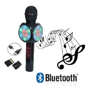 Cantar as suas músicas preferidas agora é possível e em qualquer ambiente. Divirta-se fazendo você mesmo o seu Karaokê. As crianças irão adorar, os adultos irão amar e os experientes irão se apaixonar... Uma brincadeira alegre e harmoniosa unidas ao prazer de uma boa música e com a qualidade de uma caixa de som elegante e potente. Com um acabamento Requintado e Fácil de utilizar esse microfone é realmente incrível, basta carregar a sua bateria interna entrada V8 de carregamento , ligar e sair cantando. Ele tem caixa de som própria, não precisa estar conectado a nenhum outro aparelho para funcionar. Você pode pode combinar sua festa ou evento com belas opções de Músicas. Adequado para todos os Ambientes. Utilize como karaokê em sua próxima reunião de família, até mesmo aniversários ou sala de aula. Característica: 1. Adequado para casa, exterior, Karaokê, palco, etc.2. Excelente microfone sem fio portátil 2 em 1 e alto-falante com luzes de Led de discoteca.3. Bluetooth conectividade, capaz de ser emparelhada com dispositivos habilitados para bluetooth. Excelente qualidade de som com efeito de reverberação de eco.4. Alta compatibilidade, é adequado para Celulares, qualquer dispositivo habilitado para bluetooth.5.Multiuso: bluetooth de alto-falantes, karaokê, musicais gravações, entrevistas, podcasts e assim por diante. Todos como aplicações do canto ideal para o som da fala. 6.Botão de afinação.7.Design confortável portátil de mão para suas mãos, o que o torna fácil de utilizar o dia todo. Então vá em frente e comece a cantar com todo o coração.8. Com luzes Led, ajudam você com um brilhar mais forte deslumbre com nosso microfone de karaokê.Imagens Ilustrativas Não acompanha Cartão TF Utilizado apenas para ilustração de sua funcionalidade. Especificações: Potência de saída: 3wFaixa de frequência: 100hz10khzNível máximo de pressão sonora 115db 1khz tdh 1%Modo de reverberação: reverberação efeito de som.Alimentação de energia: bateria de iões de lítio incorporada.Capacidade de bateria; 1800mahTensão de carregamento: dc5vImagens Ilustrativas Não acompanha Cartão TF Utilizado apenas para ilustração de sua funcionalidade. Informações: - Modo Gravação- Entrada Cartão SD- Entrada USB- Entrada Fone de ouvido- Ajuste de voz com ajuste de Modo Reverberação de Efeitos Sonoros- Ajuste de volume- Carregue suas músicas e insira em seu microfone.- Ajuste de Batida- Bluetooth 3.0- Controle de Mixer- Conecta com celular / tablet via BluetoothImagens Ilustrativas Não acompanha Cartão TF Utilizado apenas para ilustração de sua funcionalidade.