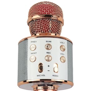 Microfone Karaokê Infantil WS858 Rose Gold Sem Fio Com Bluetooth Microfone bluetooth de alta sensibilidade que vai transformar suas brincadeiras entre amigos mais divertidas. Construído em dois alto-falantes, você pode ouvir e cantar a qualquer hora e em qualquer lugar. Usando o Bluetooth do telefone móvel, para sincronizar com suas músicas prediletas. Função de cancelamento de ruído microfone capacitivo sem fio, você pode desfrutar e cantar suas músicas com praticidade pelo próprio microfone. Características Técnicas: Modelo: WS - 858. Material: ABS shell Potência de saída: 10mW saída de fone de ouvido Tipo de alimentação de Carregamento: DC5V Faixa de Frequência: 100Hz-10KHz Capacidade da Bateria: 1200mAh Máximo nível sonora: 115dB 1 kHz THD Não é necessário nenhum aplicativo para uso do microfone É possível reproduzir áudios e músicas via bluetooth O carregamento é via USB, podendo ser recarregado em qualquer dispositivo USB ou via carregador de celular ATENÇÃO: Enviado em conforme disponibilidade no , não sendo possível escolher. Medidas aproximadas do produto: Altura: 22,1 cm Largura: 7,6cm Comprimento: 7,6 cm Medidas da embalagem: Peso: 270 g Altura: 9 cm Largura: 8 cm Comprimento: 24 cm Homologação Anatel: 025911203111 Homologação Inmetro: IP-BRI-2245/2021-100 Marca: Não Informado Ean: 7908523228211