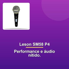 Microfone Leson Sm58 P4 Preto Brilhante Descubra o poder do Microfone Leson SM58 P4 Preto Brilhante, ideal para performances ao vivo e gravações. Com um cabo de 3 metros e chave ON/OFF, oferece praticidade e controle. Sua resposta de frequência de 50Hz a 15KHz e sensibilidade em 1KHz garantem som cristalino. O design unidirecional cardioide minimiza ruídos indesejados. Construído com corpo metálico e globo em aço, possui cápsula dinâmica com imã de neodímio e filtro pop interno. O conector XLR de 3 pinos e o cabo coaxial blindado asseguram durabilidade e qualidade sonora. Com apenas 210g, é leve e fácil de manusear. Descubra o poder do Microfone Leson SM58 P4 Preto Brilhante, ideal para performances ao vivo e gravações. Com um cabo de 3 metros e chave ON/OFF, oferece praticidade e controle. Sua resposta de frequência de 50Hz a 15KHz e sensibilidade em 1KHz garantem som cristalino. O design unidirecional cardioide minimiza ruídos indesejados. Construído com corpo metálico e globo em aço, possui cápsula dinâmica com imã de neodímio e filtro pop interno. O conector XLR de 3 pinos e o cabo coaxial blindado asseguram durabilidade e qualidade sonora. Com apenas 210g, é leve e fácil de manusear. Ean: 7898944650251