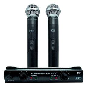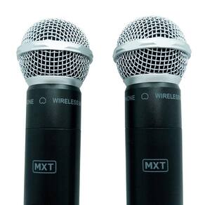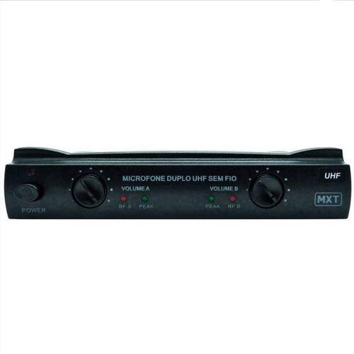 Microfone Mxt Sem Fio Duplo Uhf302 Maleta Freq... Descricao Informacoes do ProdutoDesign moderno e tecnologia inovadoraSistema sem fio com 2 microfones ideal para uso todos os eventos: Karaoke, gravacao fonte de som e amplificador, concertos vocais, live-performances, conferencias, musical e opera, igreja, escola, salao, familia, festa, etcInformacoes TecnicasReceptor R-302Frequencia: 614~806MHzEstabilidade de Frequencia: RF:-100dBmImagem de Rejeicao Espelhada: 45dBSinal/Ruido: 95 dBDistorcao: de Saida de Audio: 1V (10K)Alimentacao: DC12V 500MAMicrofones de Mao UHF-302Frequencia 1: / 690.3MHzFrequencia 2:/ / 694.8MHzFrequencia de Estabilidade: 10ppmSaida RF: Modulacao: FMDesvio Maximo: 75KHzEmissao Simulada: 40 dBAlimentacao: 3V (2 pilhas tamanho AA)Consumo de Corrente: 100mA Descricao Informacoes do ProdutoDesign moderno e tecnologia inovadoraSistema sem fio com 2 microfones ideal para uso todos os eventos: Karaoke, gravacao fonte de som e amplificador, concertos vocais, live-performances, conferencias, musical e opera, igreja, escola, salao, familia, festa, etcInformacoes TecnicasReceptor R-302Frequencia: 614~806MHzEstabilidade de Frequencia: RF:-100dBmImagem de Rejeicao Espelhada: 45dBSinal/Ruido: 95 dBDistorcao: de Saida de Audio: 1V (10K)Alimentacao: DC12V 500MAMicrofones de Mao UHF-302Frequencia 1: / 690.3MHzFrequencia 2:/ / 694.8MHzFrequencia de Estabilidade: 10ppmSaida RF: Modulacao: FMDesvio Maximo: 75KHzEmissao Simulada: 40 dBAlimentacao: 3V (2 pilhas tamanho AA)Consumo de Corrente: 100mA Marca: GRUPO MXT