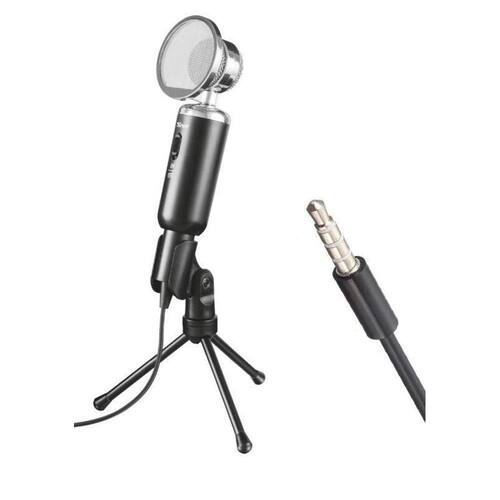 O microfone de mesa madell para pc e laptop 3.5mm com tripé e proteção de vento da trust é ideal para conversação, jogos, vlogging e até para cantar Possui proteção de vento removível melhorando a qualidade de voz, tripé com ângulo ajustável e botão silenciar. Possui cabo 3.5mm de 2.5m.