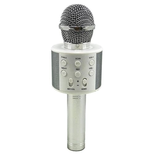 Microfone Sem Fio Bluetooth Karaoke - WS858 Cor: Prata Microfone Sem Fio Bluetooth Karaoke - WS858