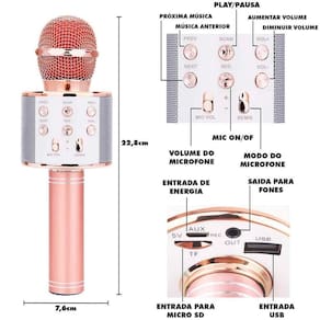 Apresentamos o Microfone Karaoke Sem Fio WS858, uma forma emocionante de compartilhar momentos musicais com a família. Ideal para festas, encontros e momentos descontraídos, este microfone proporciona uma experiência sonora envolvente e possibilita que você e seus pequenos cantem suas músicas favoritas juntos.