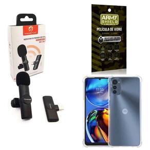 Microfone Sem Fio Profissional com presilha Tipo C H'maston O Microfone Sem Fio Profissional com presilha Tipo C H'maston de alta sensibilidade com captação de áudio 360 graus, possui resposta rápida para que você grave todos os detalhes de som Qualidade de som pura, comparável a uma equipe de gravação profissionalEste Microfone Sem Fio H'Maston MK-04 Wireless 360 com Interface USB-C para SmartPhone e Tablets Android, além de PC com entradas USB-C Type-C , possui uma alta qualidade de som, é portátil e muito fácil de usar, sendo Plug and play apenas colocar em seu smartphone e usar. O Sistema Wireless de Microfone Lapela para Equipamentos USB-C possui Bateria Interna com duração de até 10 horas e trabalha com uma distância de até 20m. O Microfone Sem Fio Profissional com presilha Tipo C H'maston é emparelhado automaticamente imediatamente após a conexão, sem necessidade de aplicativos, sem fios irritantes, sem depuração, apenas conexão instantânea Principais Características: Plug and play, conexão de um clique, fácil de usar. Áudio limpo e preciso e mão livres ao gravar Conector USB-C para SmartPhone e Tablets Android Captação de áudio sem ponto cego de 360 grau Latência muito baixa de 9 milissegundos Alcance de até 20 metros em locais sem obstáculos Função antirruído do circuito de redução de ruído Bateria Interna com duração de até 10 horas Qualidade de som pura e alta sensibilidade Compatível com uma variedade de dispositivos Adequado para todos os tipos de transmissão ao vivo, gravação, entrevista, gravação de vídeo, Vlogs, Youtubers, aulas online e muito mais.-------------Película de Vidro 3D Blindada - ArmyshieldA película de vidro 3D para celular é um produto de alta qualidade que oferece proteção e estilo para o seu dispositivo móvel. Feita de vidro temperado de alta resistência, a película é projetada para se encaixar perfeitamente na tela do seu celular, proporcionando uma cobertura completa e proteção contra arranhões, rachaduras e outros danos.A película de vidro 3D é especialmente projetada para se curvar suavemente ao redor das bordas do seu celular, criando uma aparência elegante e sem bordas. Isso significa que você pode desfrutar de uma experiência de visualização imersiva e sem interrupções, sem se preocupar com a película descolando ou interferindo na sensibilidade da tela.Atenção: O produto acompanha apenas o que apresenta na imagem.