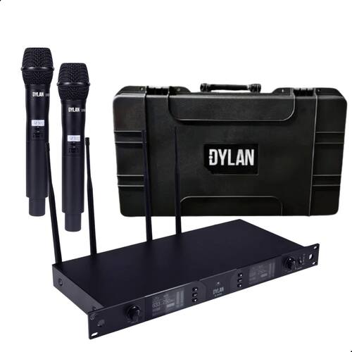 Destaques do Produto: Transmissores: 2 microfones de mão D-9501 com cápsula dinâmica cardioide, ideais para vocais claros e nítidos.