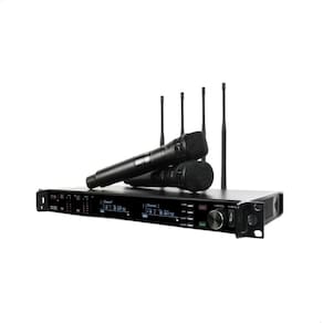 O sistema sem fio QS-10 e indicado para quem procura qualidade de audio e estabilidade de transmissao, pois possui o sistema True Diversity. Sua capsula dina^mica super cardioide tem maior rejeicao a ruidos laterais, melhorando a performance em palcos com alto volume. Indicado para captacao de voz falada ou cantada, ideal para eventos de pequeno e medio porte. Itens inclusos: 2 Bastões QS-10 com cápsula removível 1 QS-10 duplo unidade de rack 2 cabos P10/P10 1 fonte de energia bivolt 1 manual ilustrado 1 case para transporte Faixa de frequência de 630 680 Mhz Resposta de frequência de áudio: 50 Hz a 18 Khz Potência de RF: 30 mW Bastões com chave on/off Display da base digital indicação do canal, tempo de bateria e sinal de RF Cápsula dinâmica super cardióide Alimentação: Pilhas alcalinas AA 10 horas de duração Distância da base: até 100 metros dentro das condições ideais Homologação Anatel: 110052213346