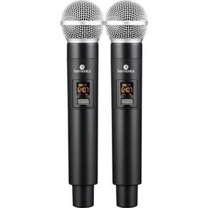 Microfone Sem Fio Harmonics Hsf200-2 O Microfone Sem Fio Harmonics HSF200-2 é um sistema que acompanha dois microfones sem fio e um receptor, projetado para uso em performances ao vivo, apresentações, conferências e outros eventos onde é necessário um sistema de áudio portátil e de alta qualidade. Os microfones de mão são alimentados por pilhas, além disso, o design sem fio permite que os usuários se movam livremente pelo palco ou espaço de apresentação sem se preocupar com a restrição de fios. O receptor possui tecnologia de sincronização automática para facilitar a configuração e operação, além de uma tela LCD clara para facilitar a visualização do status do microfone e outras informações importantes.