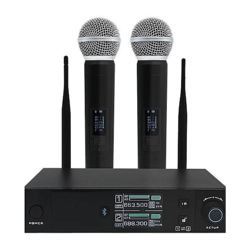 Microfone sem fio leson ls vks2 com bluetooth Especificacao tecnica - faixa de transmissao: uhf550-960mhz - transmissao tecnologica com audio digital - audio digital de 16 bit - consumo eficiente da bateria - apresenta a frequencia e bateria no visor lcd do microfone/ - selecao de multiplas frequencias - projetado para ser utilizado em palcos, apresentacoes, igrejas e etc. - distancia de ate 80m em areas abertas Imagens meramente ilustrativas. descricao especificacoes do microfone: Troca de frequencia: Ir sync Potencia de saida: 10-30mw harmonica: <-50dbc Bateria: 2 pilhas 5v aa duracao da bateria: 5h media especificacoes do : Frequencia: Uhf550-960mhz Largura de banda: 30mhz Faixa dinamica: 96db Distorcao: <0.3% Resposta de frequencia: 30hz-20hkz/+2db Sensibilidade: -95db Power supply: Dc 12-18v 500ma Saida output: 1x6.3mm, 2x xlr saida balanceada. Homologação Anatel: 110052213346