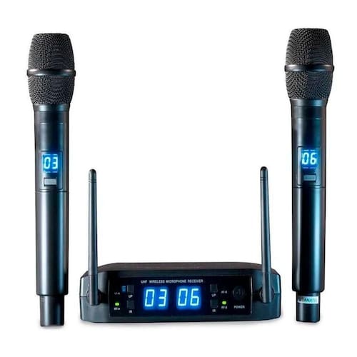 Microfone Sem Fio Preto Digital Multifrequencia Ls916 Microfone Duplo Leson Ls916 Multifrequencia 32 Frequencias MICROFONE SEM FIO DIGITAL DE MULTIFREQUÊNCIA LESON LS-916 DISPLAY LCD