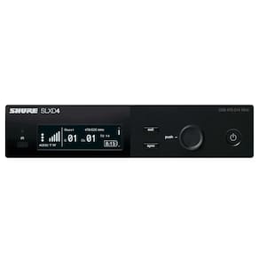 Cada sistema inclui um de um canal SLXD4, um transmissor de mão SLXD2/B58, antena, acessórios para instalação em rack e 2 pilhas AA.