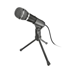 Microfone TRUST Starzz C/Tripé 21671 Microfone de elevada performance com botão para silenciar e tripé, para proporcionar espetaculares reproduções de voz nítidas e naturais. Características principais: Ideal para gravar vozes, sessões de jogo online, conversação, Skype e aplicações controladas por voz, Para utilizar em qualquer lado: microfone de mão com tripé incluído, indicado para utilizar com e sem as mãos, ficha de 3,5 mm com revestimento dourado para uma ligação optimizada e melhor qualidade de voz, Cabo extra longo de 250