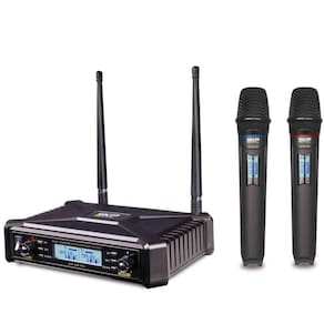 Microfone Uhf-600 Duplo De Mão Multifrequência Sem Fio Sauhf600pro Microfone UHF duplo de mão Multifrequência de 2 x 300 Canais, Padrão Polar Cardióide, Faixa de frequência de 668-698 Mhz , IR Sync , Auto Scan , Alimentação dos bastões: 2 Pilhas AA , Receptor: BIVOLT, Saídas XLR balanceadas / Mix Out. Ean: 7798357872724